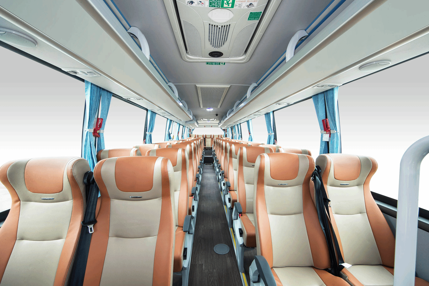 法士特六擋變速箱;大為電渦流緩速器;前橋盤式制動器(22.5寸);后橋鼓式制動器;國產ABS;電磁離合風扇;氣囊減震司機椅;優樂座椅;Y-2型行李架;橢圓廂燈;光面覆膜側護板;鋼管防護欄;全鋁遙控外擺乘客門;LED大燈及尾燈;翹板開關;前向防撞及車道偏離預警