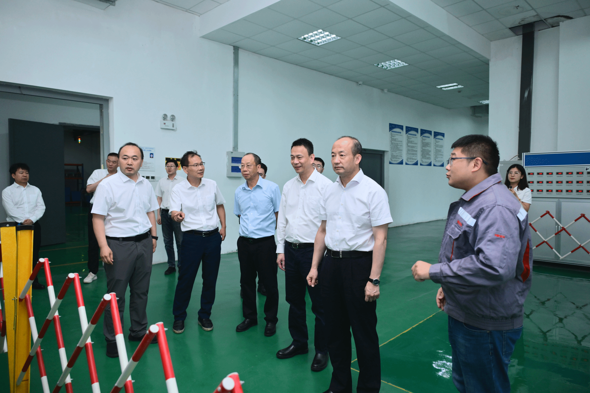 福汽集團黨組書記、董事長黃循鈾(前排右二)參觀海格研發試驗中心