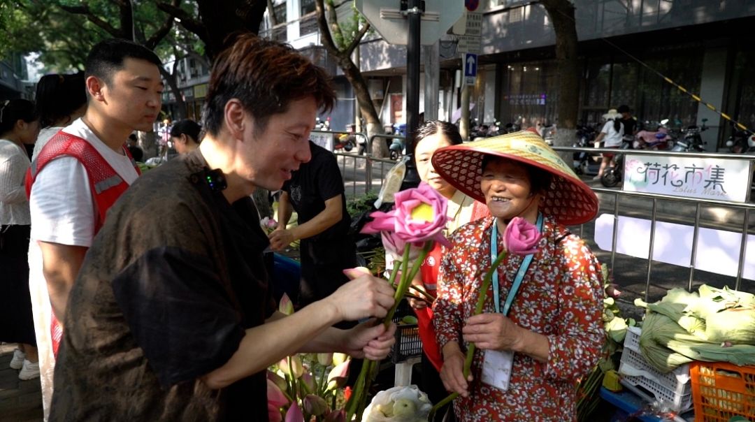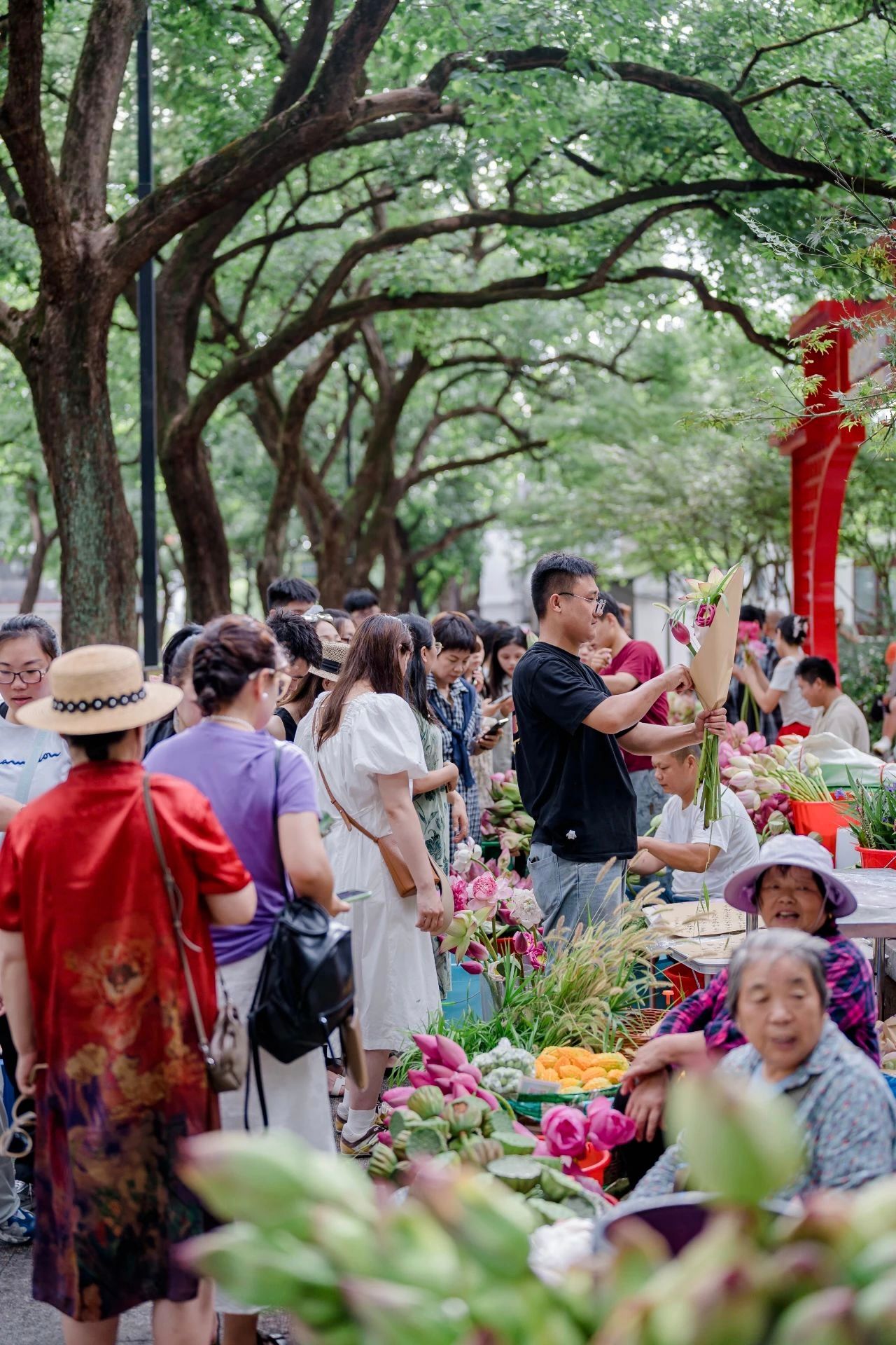 荷花市集位于蘇州古城白塔西路。每天清晨五六點,伴著晨光和蟬鳴,挑著竹筐的阿婆們,就已經裝點起了整條市集街道。為了保證家住東山的荷農們能夠趕上早市,荷花專線公交雖然凌晨4:30從東山鎮準時發車,但它會提前抵達站臺,為大家搬運貨物上車預留出充足的時間。早起的荷農們順利坐上這趟班車后,不僅能放下肩上的沉甸甸的荷花、蓮蓬,還能在座位上小憩,既舒適、又不耽誤時間。77歲的朱云良老伯表示:"趕早市荷花更新鮮,能多賣三成價錢。"車廂內,荷農們帶著裹著荷葉的花苞和歡聲笑語,55分鐘的車程成為農戶們短暫休憩的"移動驛站"。