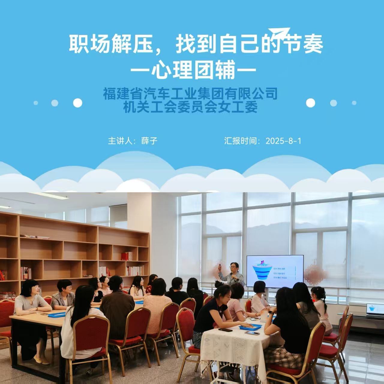 近日,福汽·欣悅空間特邀省直機關“心光大道”心理健康服務項目專家團隊,為集團總部女職工開展心理健康服務活動。活動創新采用“講座+沙盤體驗”形式,聚焦職場情緒管理核心需求,助力女職工們以更從容的心態應對工作挑戰,為企業發展凝聚巾幗力量。