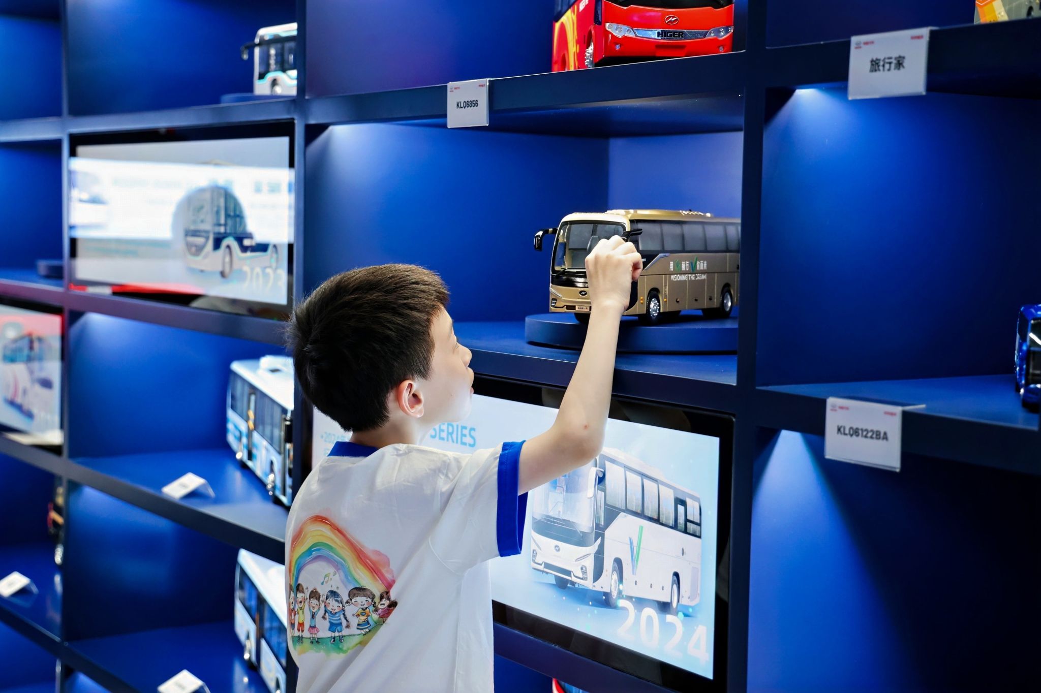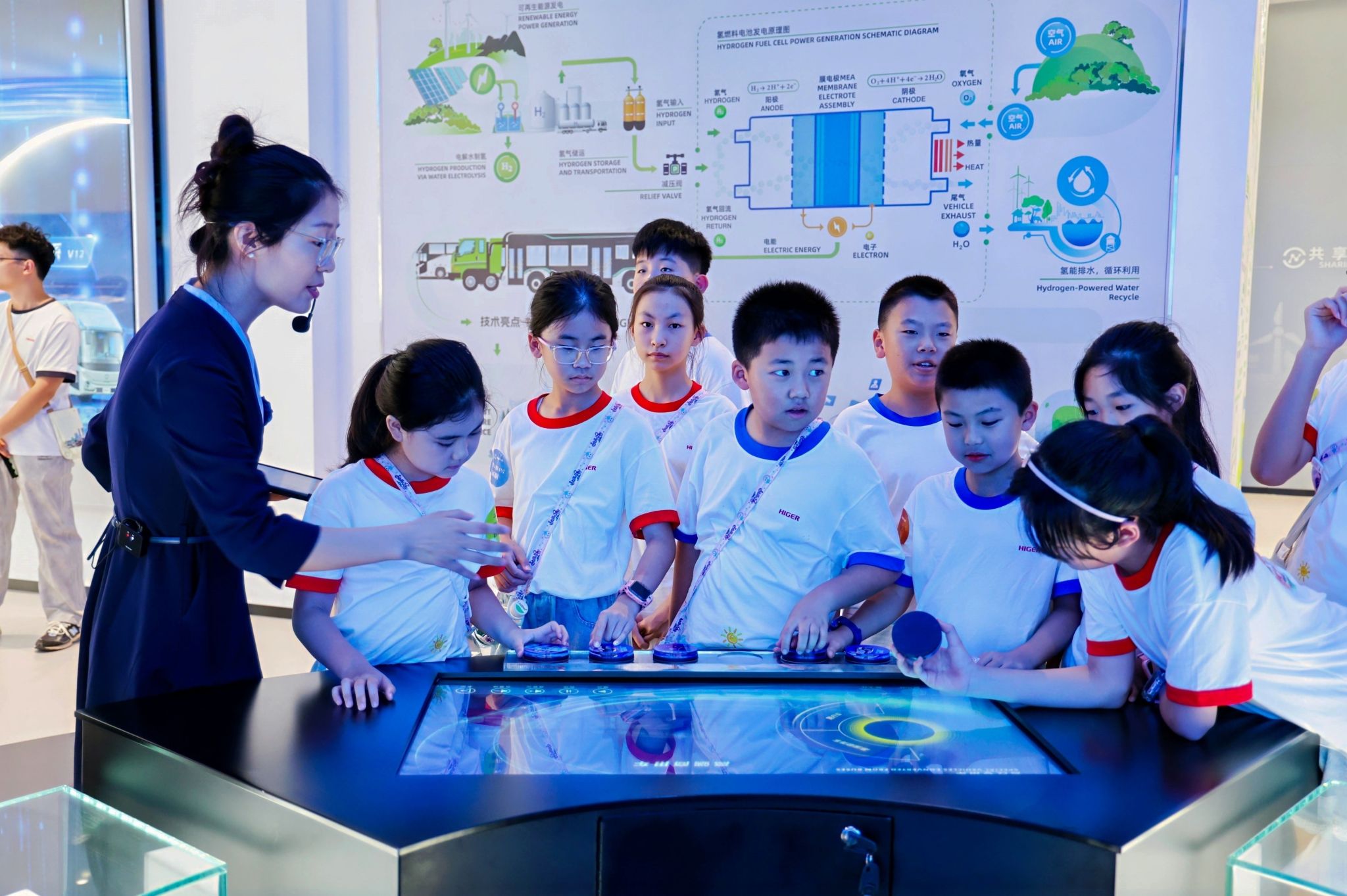 下午,孩子們首先參觀海格客車未來創想館,漂亮的講解員小姐姐,聲情并茂地通過生動的展示和細致講解,深入淺出地講解了海格客車的發展歷程、當前的創新技術、未來的發展規劃,公共交通領域的發展趨勢。在未來創想館,孩子們親眼看到了海格客車在新能源、智能化等領域的最新成果,親手感受創想館中各種新奇的設計,對汽車智能科技的飛速發展唯有無盡的好奇和難以抑制的贊嘆。