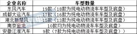 而純電動專用車(che)車(che)型數量排名前三的則有東風汽車(che)(19款)、成都大運汽車(17款)、湖北新(xin)楚風(15款);而新能源乘用(yong)車數(shu)量最多的(de)是(shi)東(dong)風(feng)特種(zhong)汽(qi)車,數(shu)量達4款。