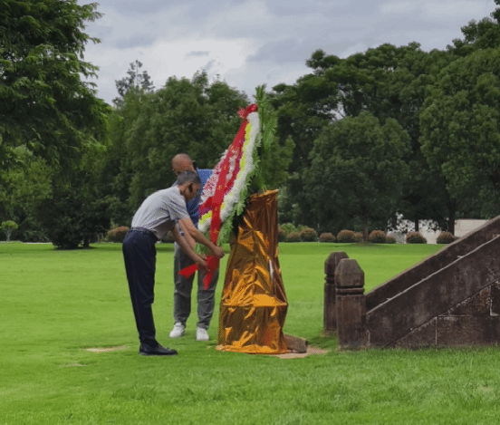 來到莊嚴肅穆的紅軍廣場,全體黨員整齊列隊,重溫入黨誓詞,向長眠于此的紅軍烈士默哀、鞠躬、敬獻花籃,緬懷紅軍烈士犧牲與奉獻的光輝事跡。