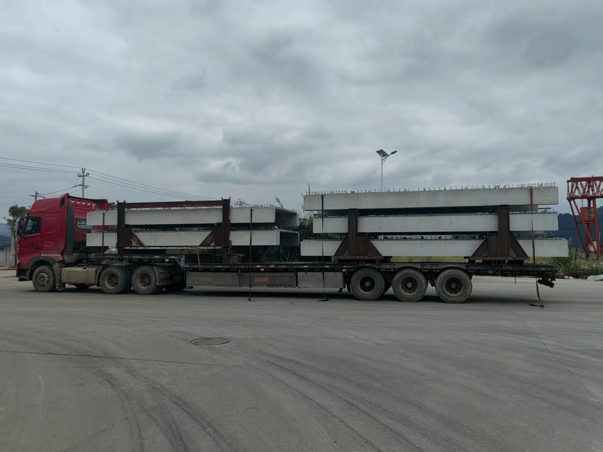 為確保運輸任務順利完成,福建藍吉成立了專項工作組,深入研究混凝土預制構件的特性和運輸要求,制定了一套全面且細致的運輸方案。在車輛調配方面,選用了符合承載標準、具備專業防護設施的運輸車輛,并對車輛進行了嚴格的檢查和維護,確保運輸過程安全可靠。同時,根據混凝土預制構件的尺寸和重量,合理安排裝載方式,采用專業的固定和防護措施,有效避免了運輸過程中的碰撞和損壞。